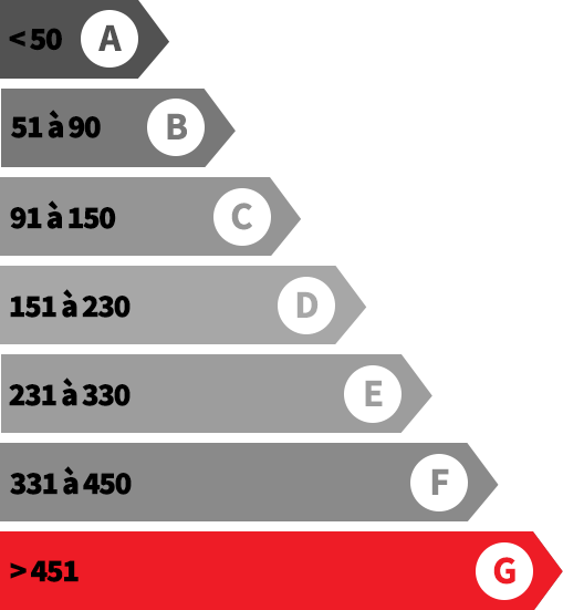 DPE : G (421)/ (92) estimation des coûts annuels d'énergie du logement entre 3.063€ et 4.145€ (prix moyen des énergies indexés sur l'année 2023 abonnements compris).